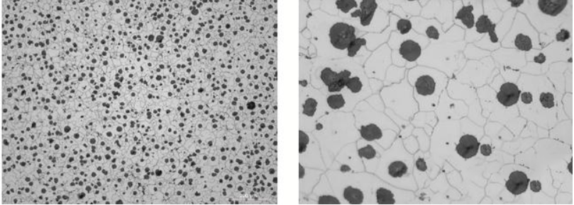 उच्च कार्बन सामग्री कास्टिंगच्या ग्राफिटायझेशनला प्रोत्साहन देऊ शकते. ग्रेफाइट गोलाकार आकार घेत असल्याने, ते यांत्रिक ऍप्लिकेशन्समध्ये ऊर्जा शोषू शकते आणि अशा प्रकारे यंत्राच्या भौतिक गुणधर्मांमध्ये सुधारणा करू शकते.